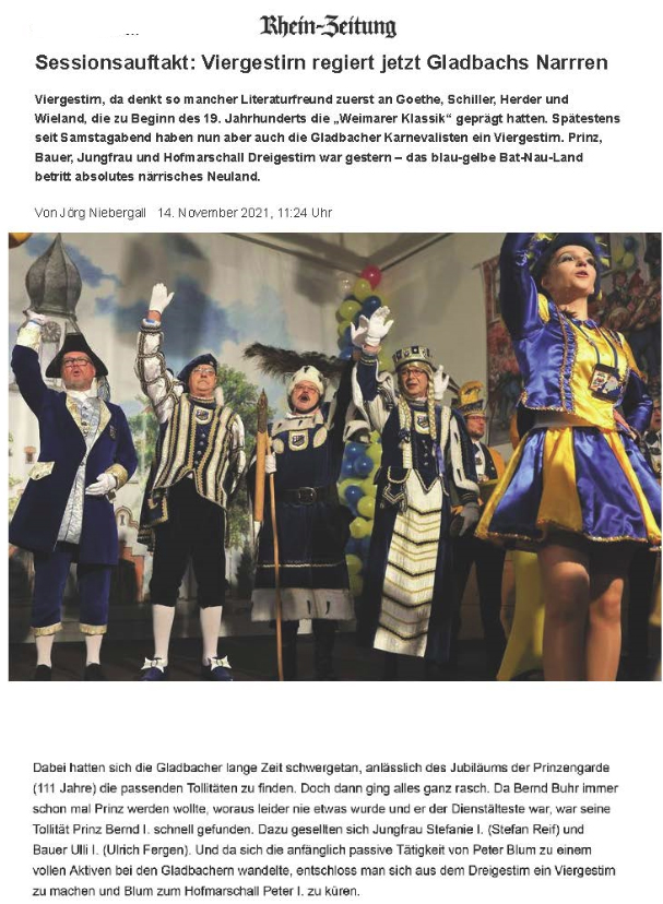 Nachdem diese Woche die ersten Exemplare unserer alljährlichen Festzeitschrift in Papierformat verteilt wurden, möchten wir euch hier die erste Ausgabe einer Gladbacher Karnevalszeitung als digitalen Print vorstellen.