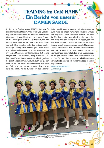 nig nach der Funkengarde der nächste Abschnitt ihrer den Mephistos an und trainierten dann im Café Hahn